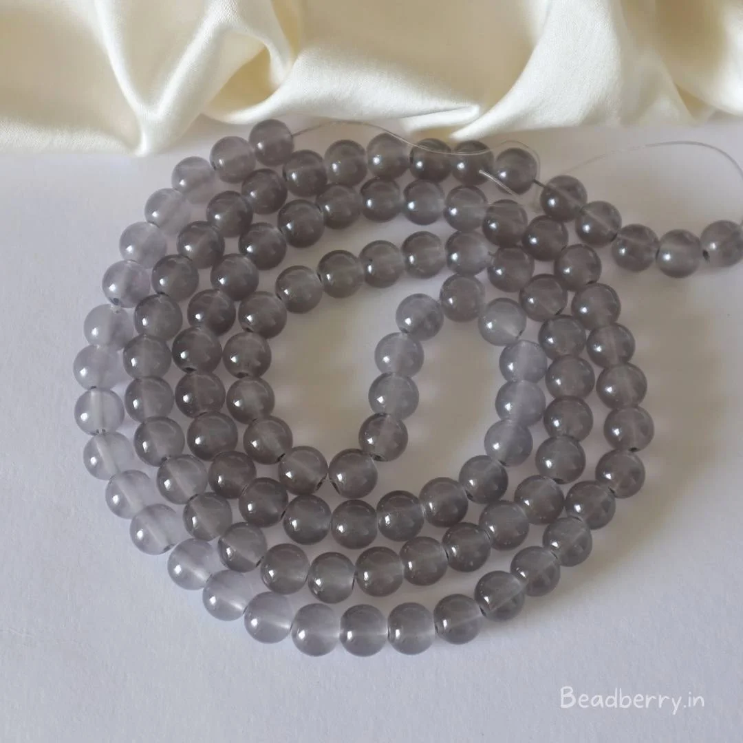 Grey Glass Beads | 1 String | Size: 8mm