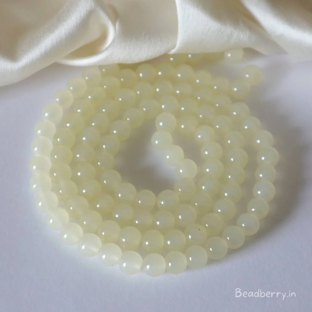 Cream Glass Beads | 1 String | Size: 8mm