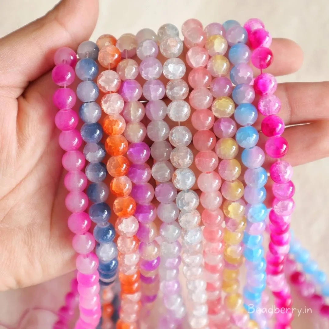 Dual Tone Crackle Glass Beads | 1 String | Size: 8mm